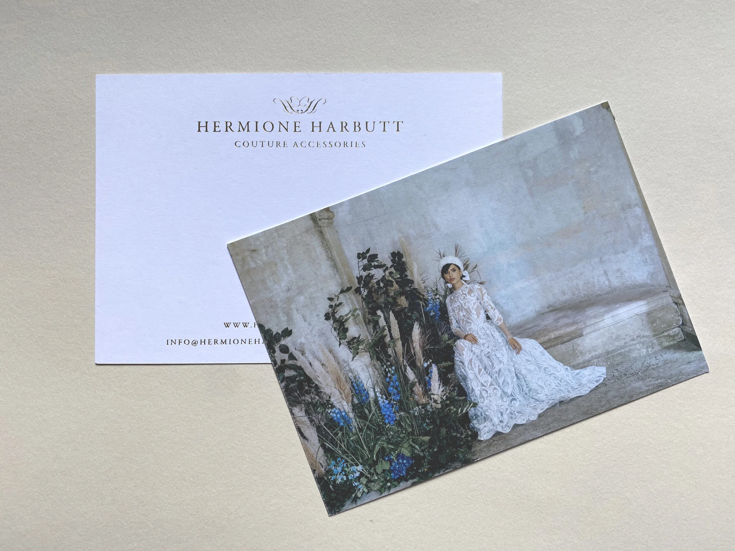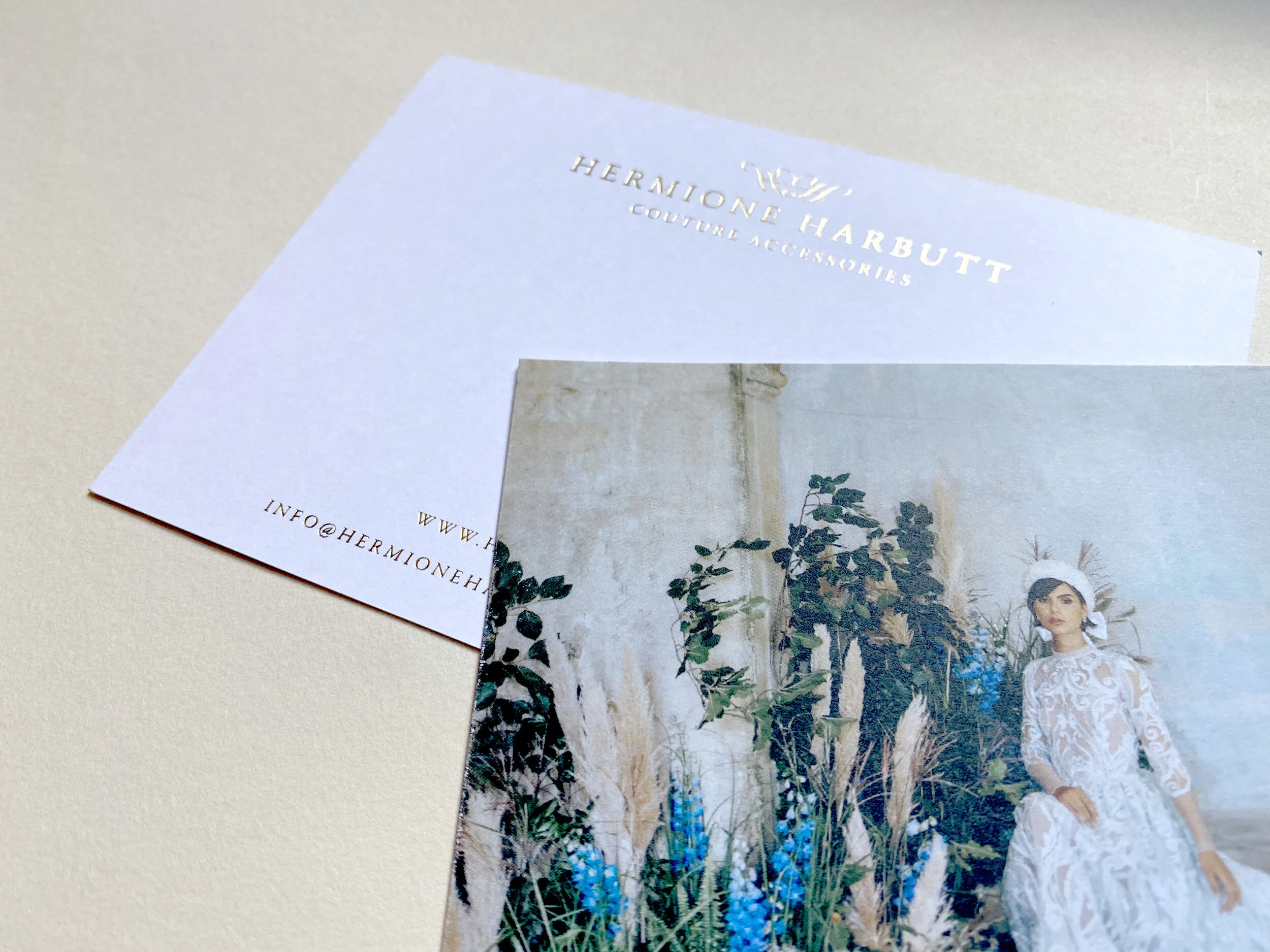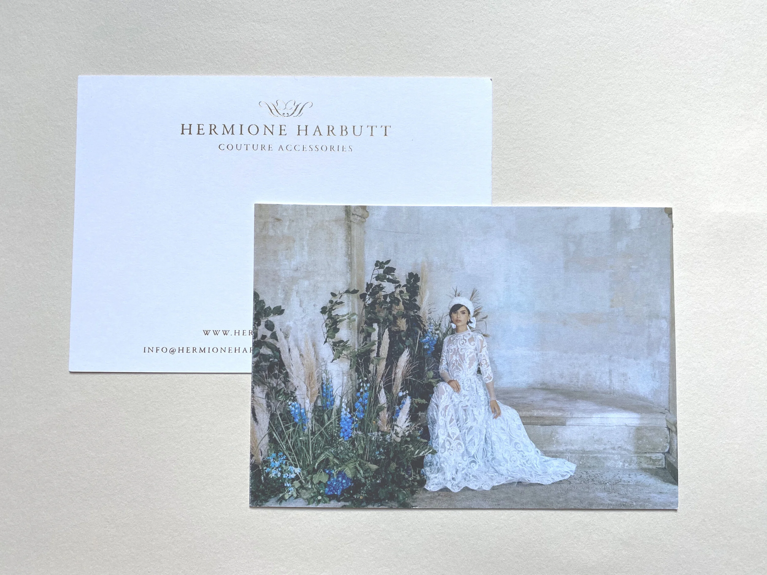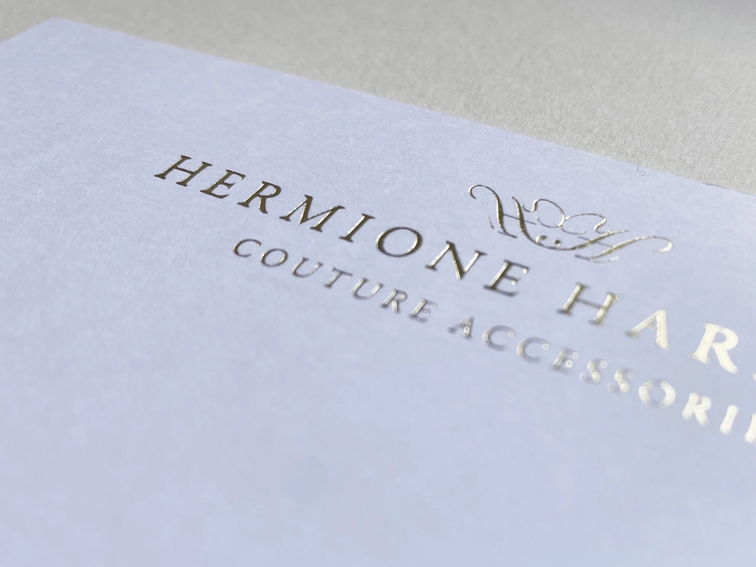 Hermione’s pieces are luxury and her marketing and stationery materials need to match. Here are the gold foiled notecards which I designed recently, printed on thick textured board and foiled for a beautifully luxe feel.